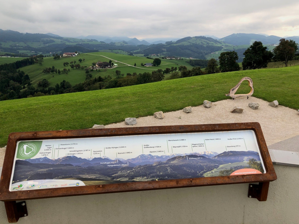 Dort angekommen genießen wir den wunderschönen Ausblick über das Mostvierler Alpenvorland.